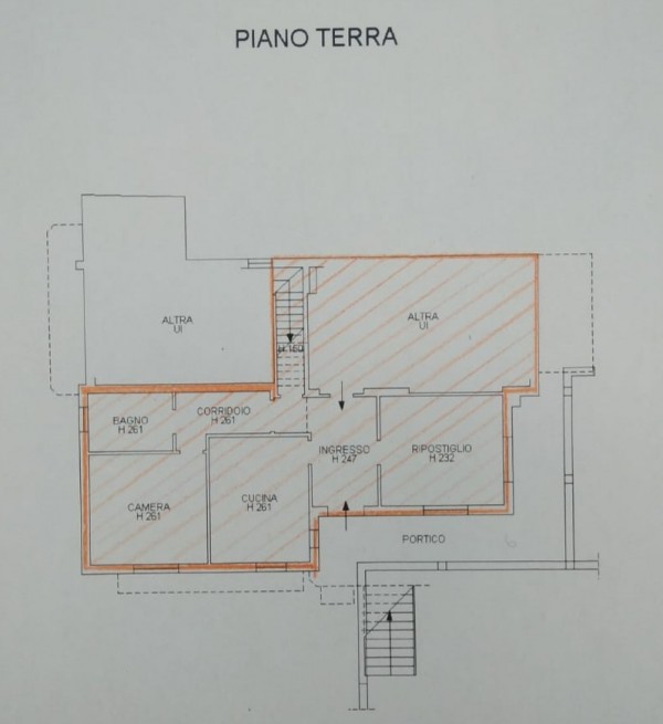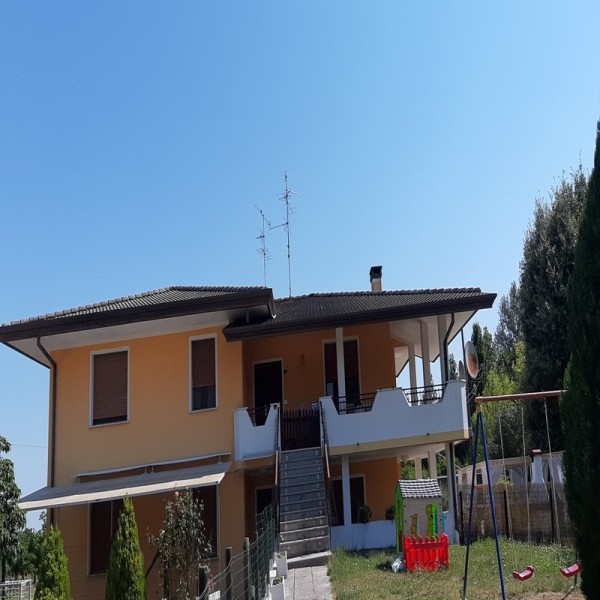 L'appartamento è composto da ingresso, taverna-soggiorno, cucina, una camera matrimoniale molto ampia e una cameretta (ripostiglio), un bagno, corridoio, una stanza adibita a ripostiglio (garage), sottoportico e centrale termica comune. Il giardino antistante la casa è di circa 285 mq mentre dietro c'è un terreno agricolo di ulteriori 600 mq. L'appartamento fa parte di una villa composta da due unità abitative, il tutto in buone condizioni. Certificazione energetica: classe F.